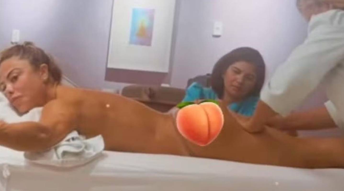 “Com elas”, escreveu Poliana, se referindo às profissionais que a atendem. Ao fazer a publicação, ela tampou o bumbum com um emoji de pêssego. Ela costuma fazer a massagem com frequência e, vira e mexe, compartilha com seguidores.