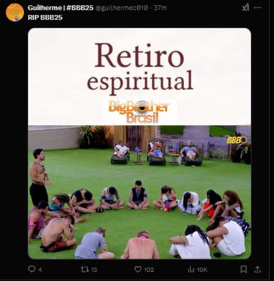 A tag RIP BBB25 foi parar entre os assuntos mais comentados do X, antigo Twitter, nesta quarta-feira (22/1), após uma ação coordenada de fandoms. Isso porque, na visão de quem acompanha o programa, o reality show da Globo não tem entregado entretenimento. Vale lembrar que a atração também sofre com uma grave crise de audiência.